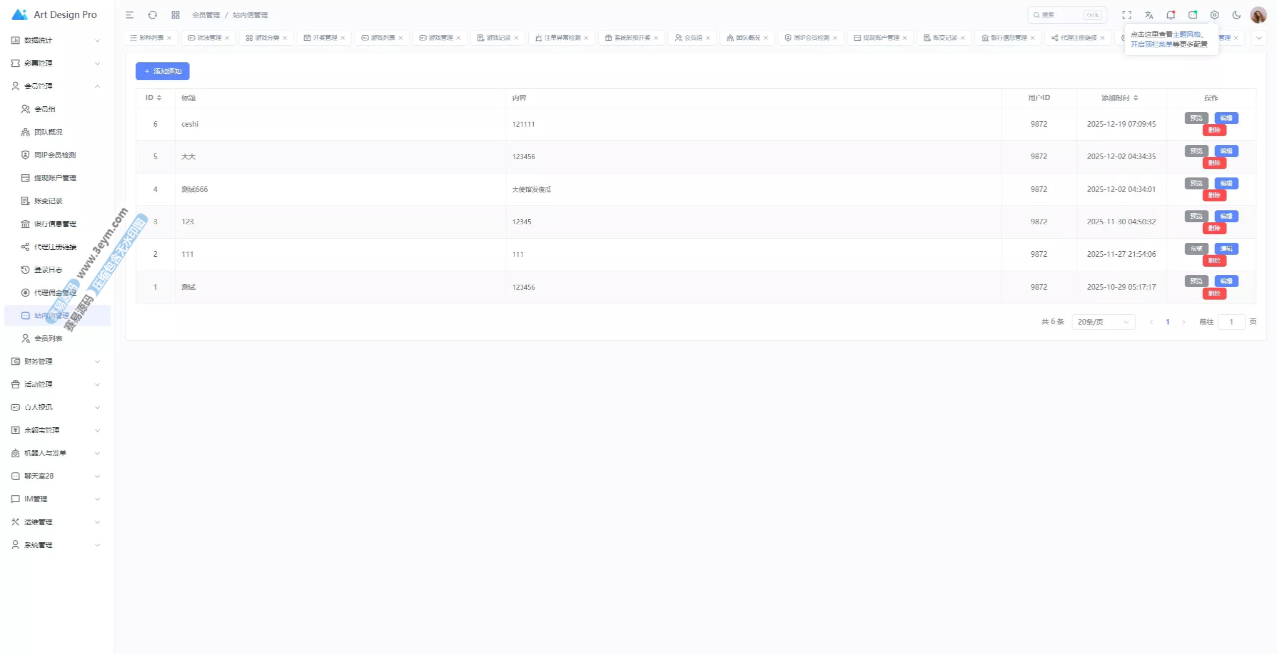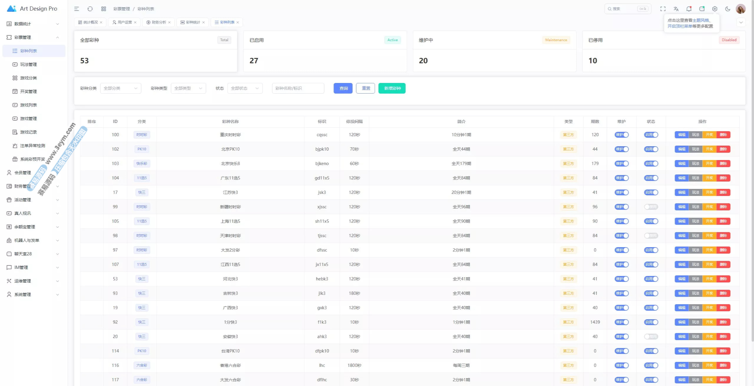 后台功能完善,支持全面管理平台运营数据:
