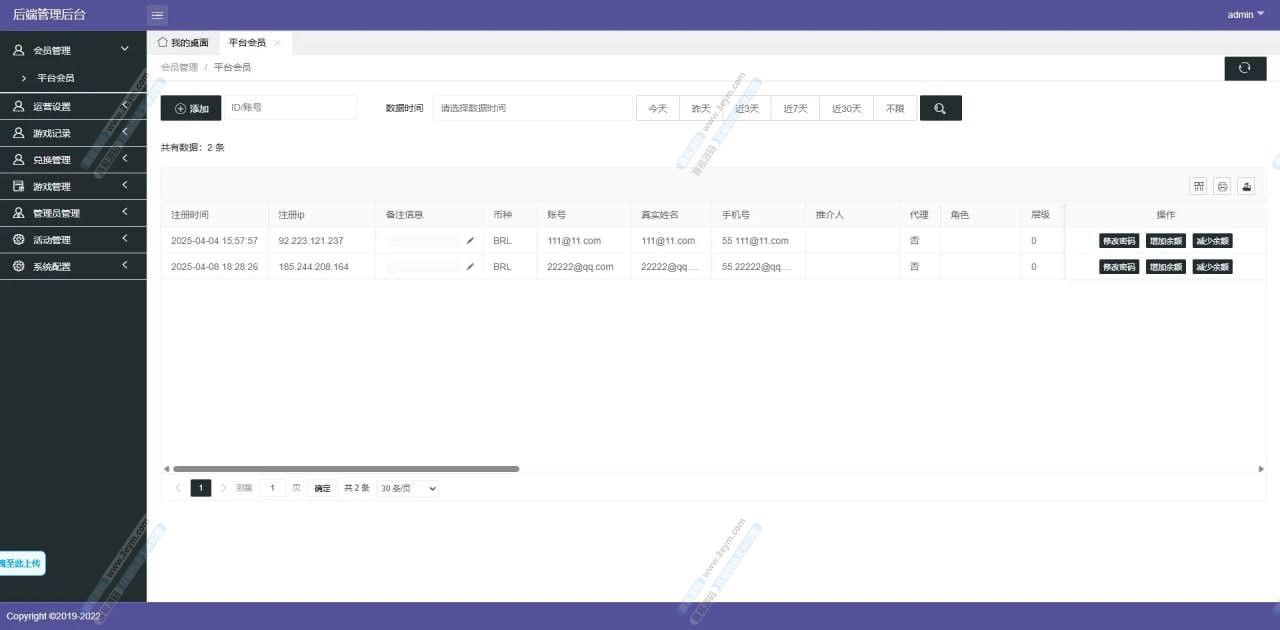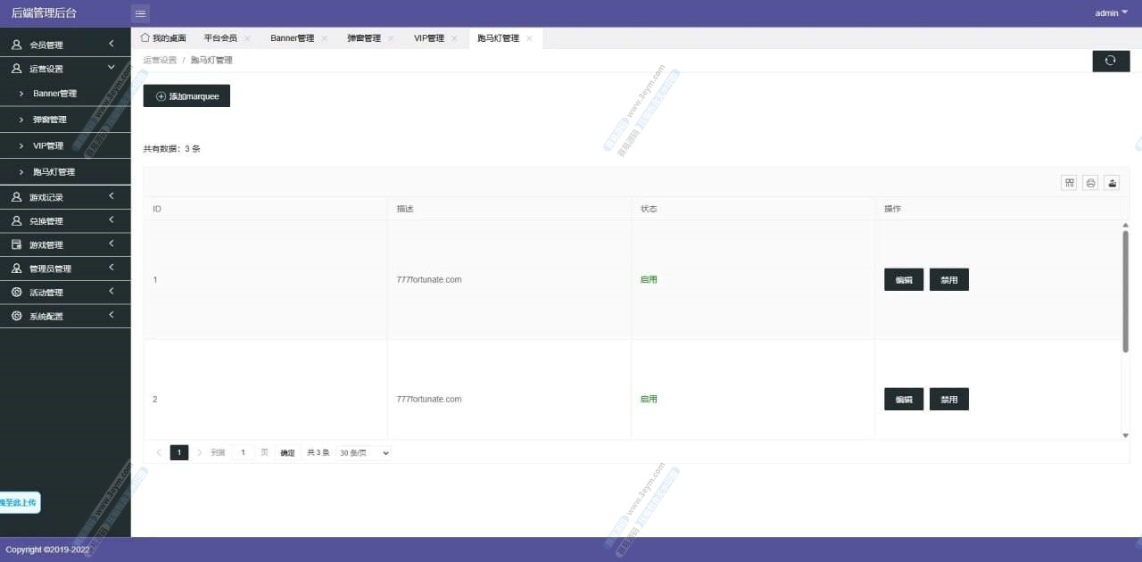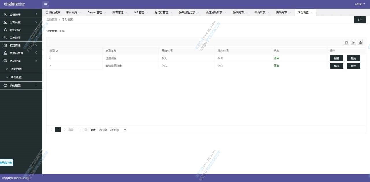 后台可控制游戏开关、赔率、输赢比例等参数。