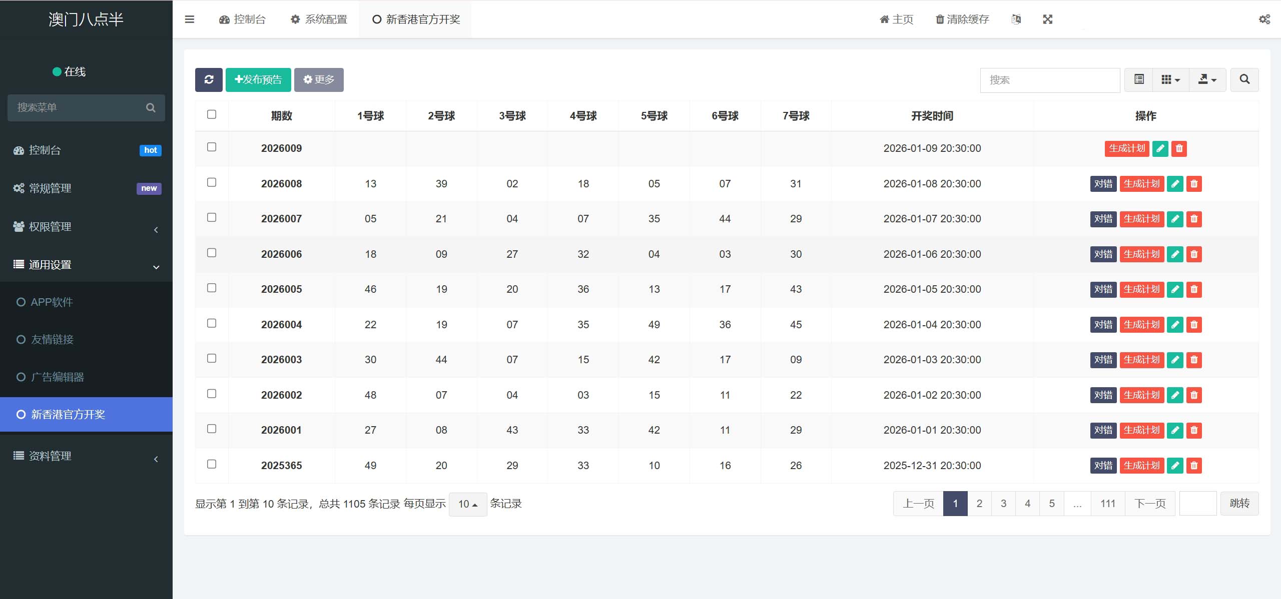 后台支持自动开奖与手动开奖两种模式,可根据需要切换。