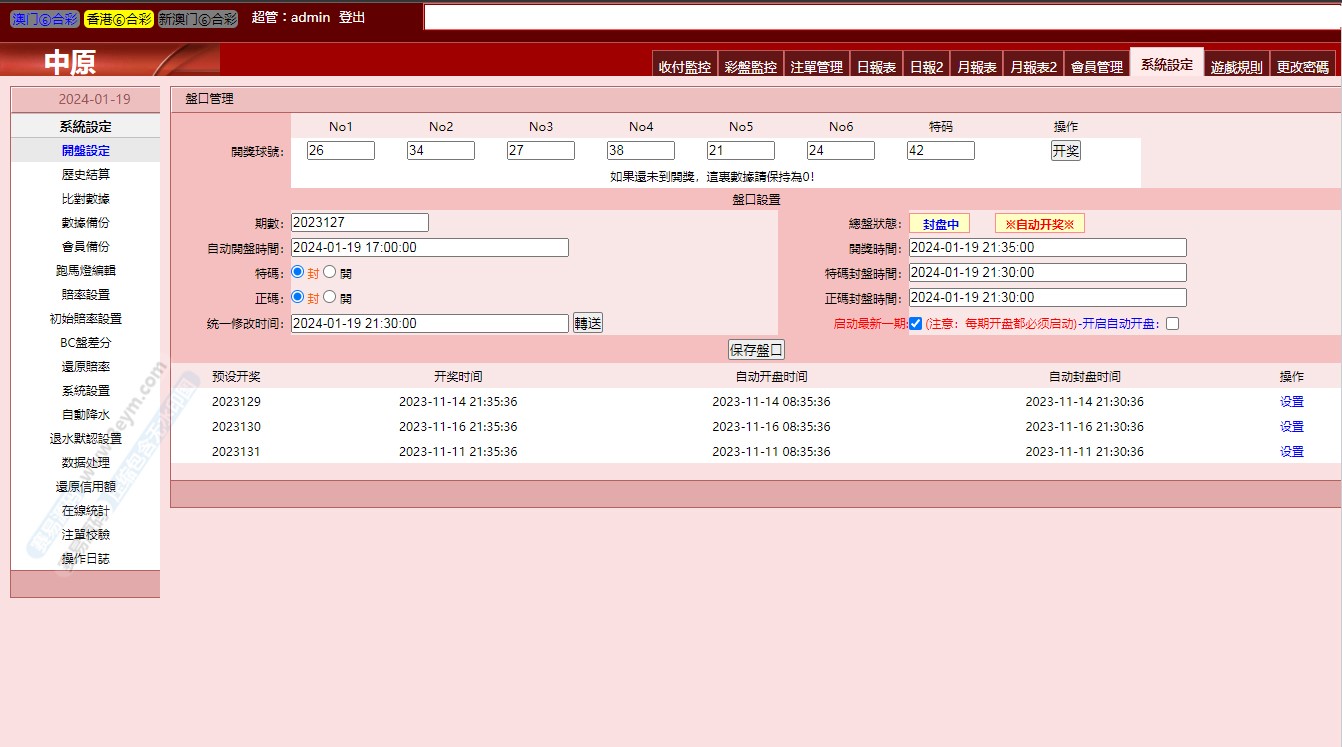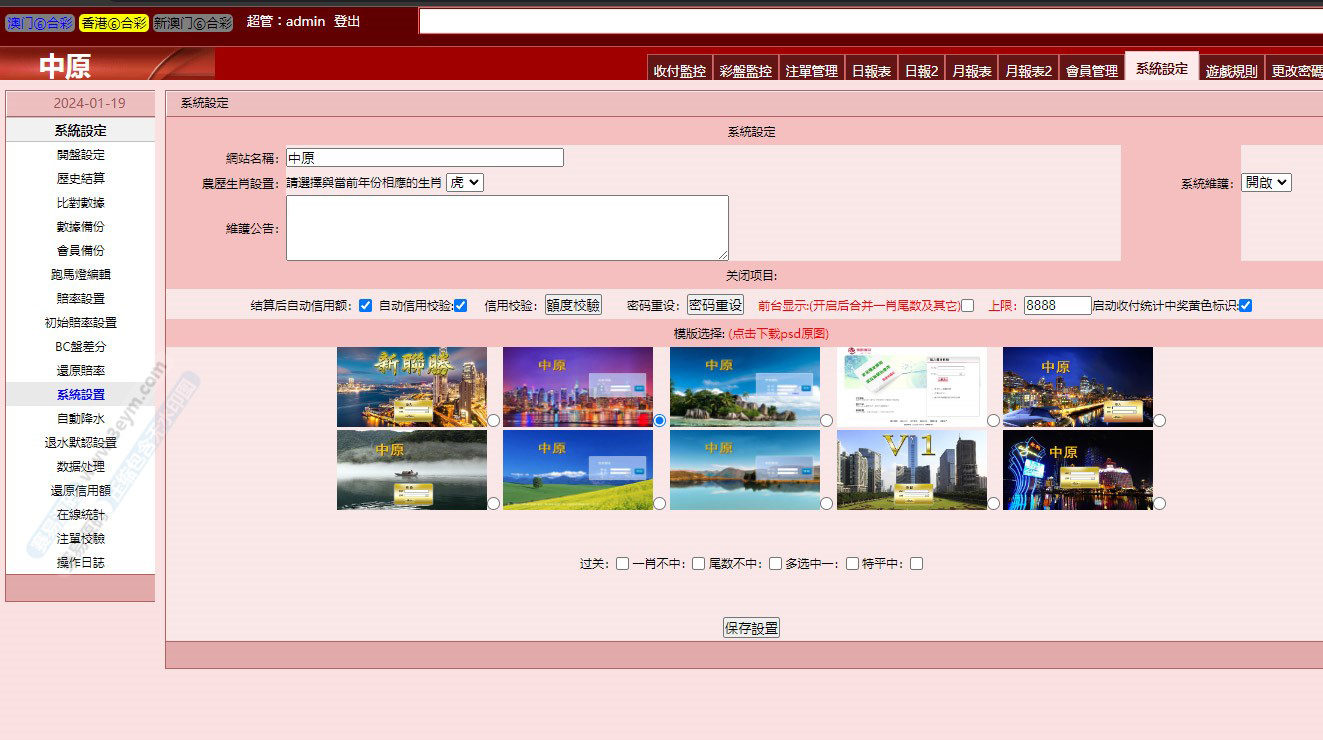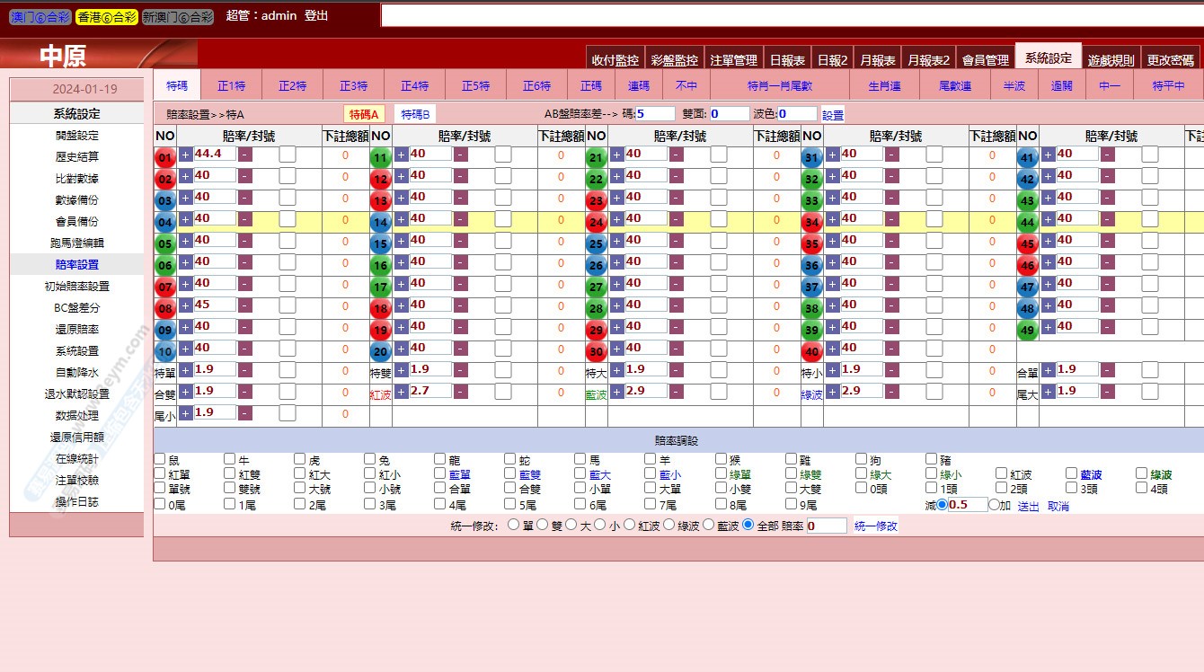 这套 三合一中原OA六合彩系统源码 为典型的 OA信用盘架构,整合了多个六合彩彩种,后台具备常见的 退水/降水 等赔率与返水相关配置项,属于“拿来即可跑通、部署即可上线”的完整版本,适合用于合规前提下的演示、测试、二开研究或在允许的司法辖区做合法运营。