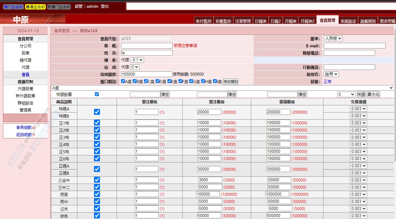 具体看图,后台有退水降水设置,典型的OA信用盘网站,