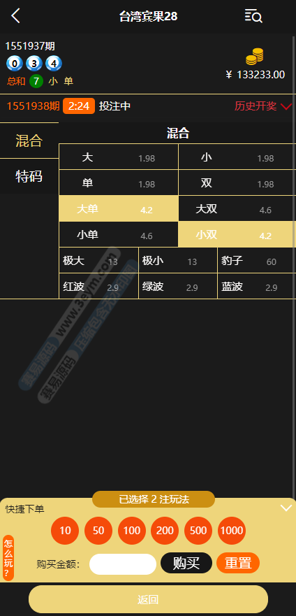 这款只有H5手机版,可以封装打包成app,也可以内嵌到聊天app上,非常小巧的一款彩票系统