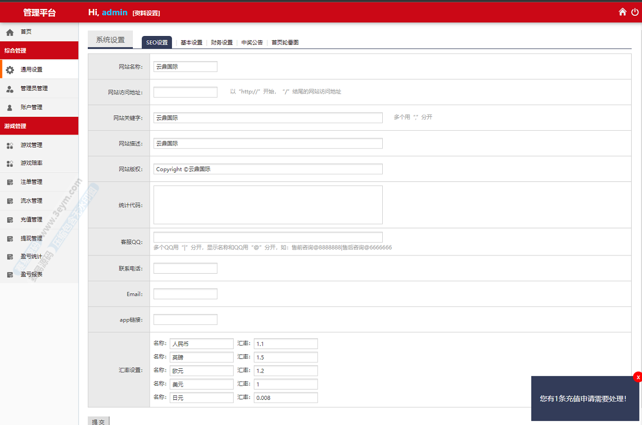 后端地址:你的域名/admin.php,后台账号:admin 密码:123456