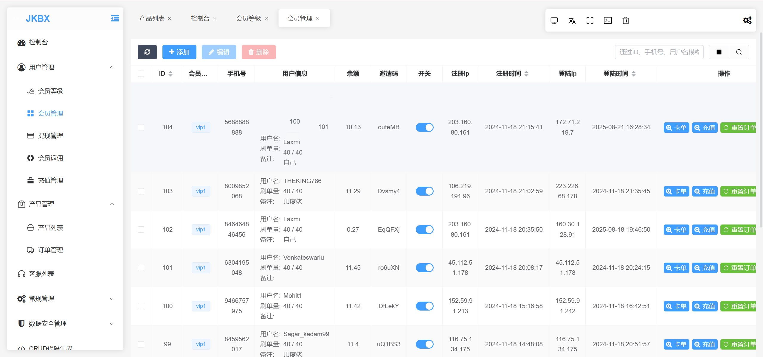 新款的音乐刷单抢单系统,有卡单的功能,在会员管理页面去操作,没有测试卡单功能是否正常