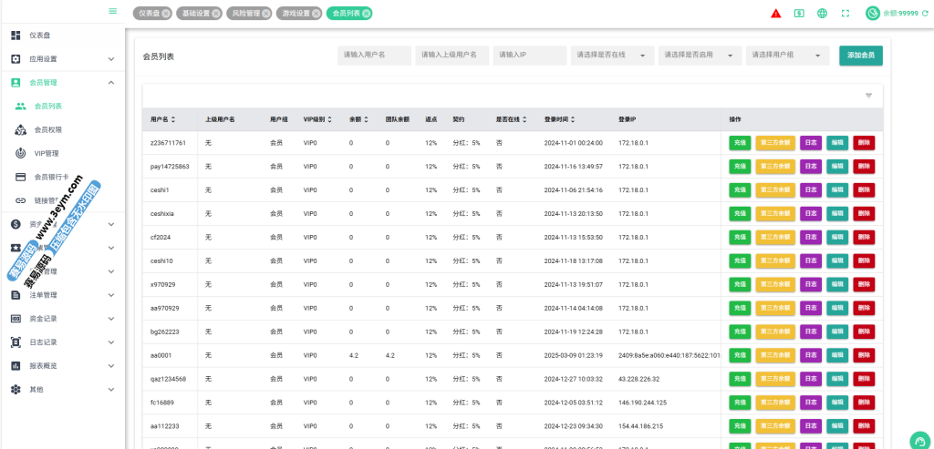 - 🔹 完整代理体系(多级代理 / 团队统计)