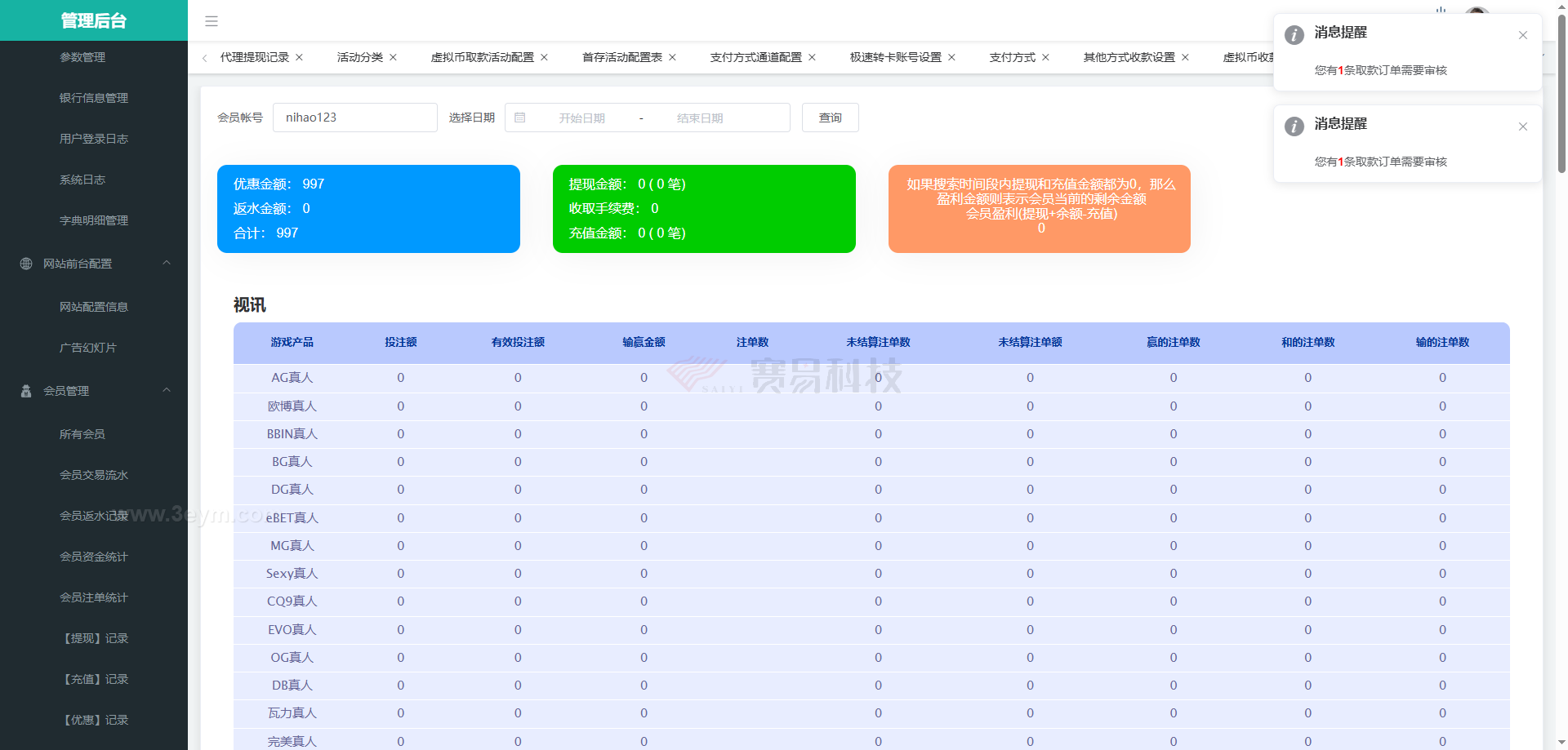 该源码为综合娱乐盘现金盘版本,适合用于体育、电子、真人、彩票等多游戏并行运营的菠菜盘。